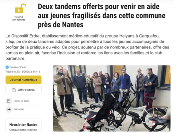 Deux tandems offerts pour venir en aide aux jeunes fragilisés dans cette commune près de Nantes