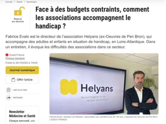 Depuis près de 140 ans, Helyans s’engage à accompagner les personnes fragilisées par le handicap, la maladie ou les accidents de la vie. Régie par la loi de 1901 et reconnue d’utilité publique, Helyans agit dans les domaines de la santé, du social et du médico-social.