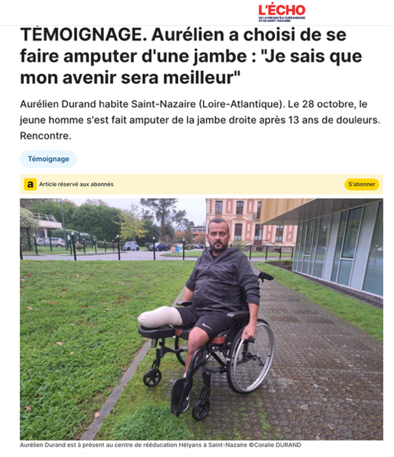 TÉMOIGNAGE. Aurélien a choisi de se faire amputer d’une jambe : « Je sais que mon avenir sera meilleur »